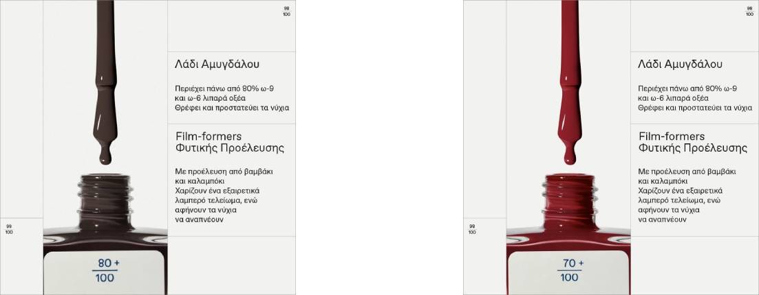 Βερνίκι νυχιών υψηλής φυσικής περιεκτικότητας που προσφέρει εξαιρετικά λαμπερό αποτέλεσμα, μέγιστη διάρκεια και πλούσιο χρώμα. Εμπλουτισμένο με θρεπτικό Έλαιο Αμυγδάλου και Film-former..