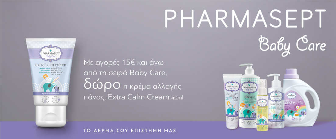 H Pharmasept Baby Care Extra Calm Cream είναι προστατευτική κρέμα καθημερινής περιποίησης του βρεφικού δέρματος μετά την αλλαγή της πάνας